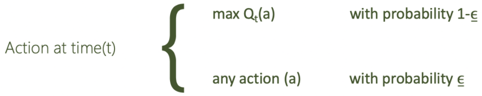 It allows our agent to choose the current best action based on the q-table while ensuring some Randomness of choice to avoid our agent stack at a local optimum. We also apply an exponential decay to the epsilon based on the formula shown in Figure 6, to make the epsilon reduces faster at the beginning and gradually converge at a specific value.