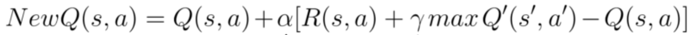 Initially, all q-values in the q-table are 0. After an action is executed, We store the previous state into the q-table and update the q-value for the action. The q-value is determined by the equation below: